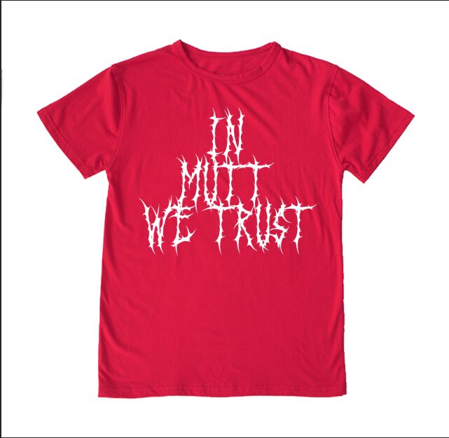 Limited Edition Tommy Henriksen “IN MUTT WE TRUST” tee. Agent Royale creates, designs and prints all tees from scratch. Slim fit, short sleeve, crew neck collar. As a result the best fitting shirts in Rock N’ Roll. Don’t just wear it, Rock it!